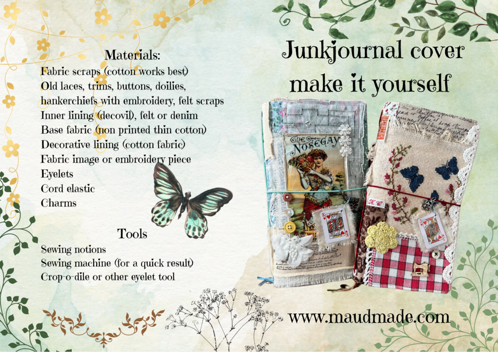 Make you own junkjournal cover from scarps of fabric, trims and laces/